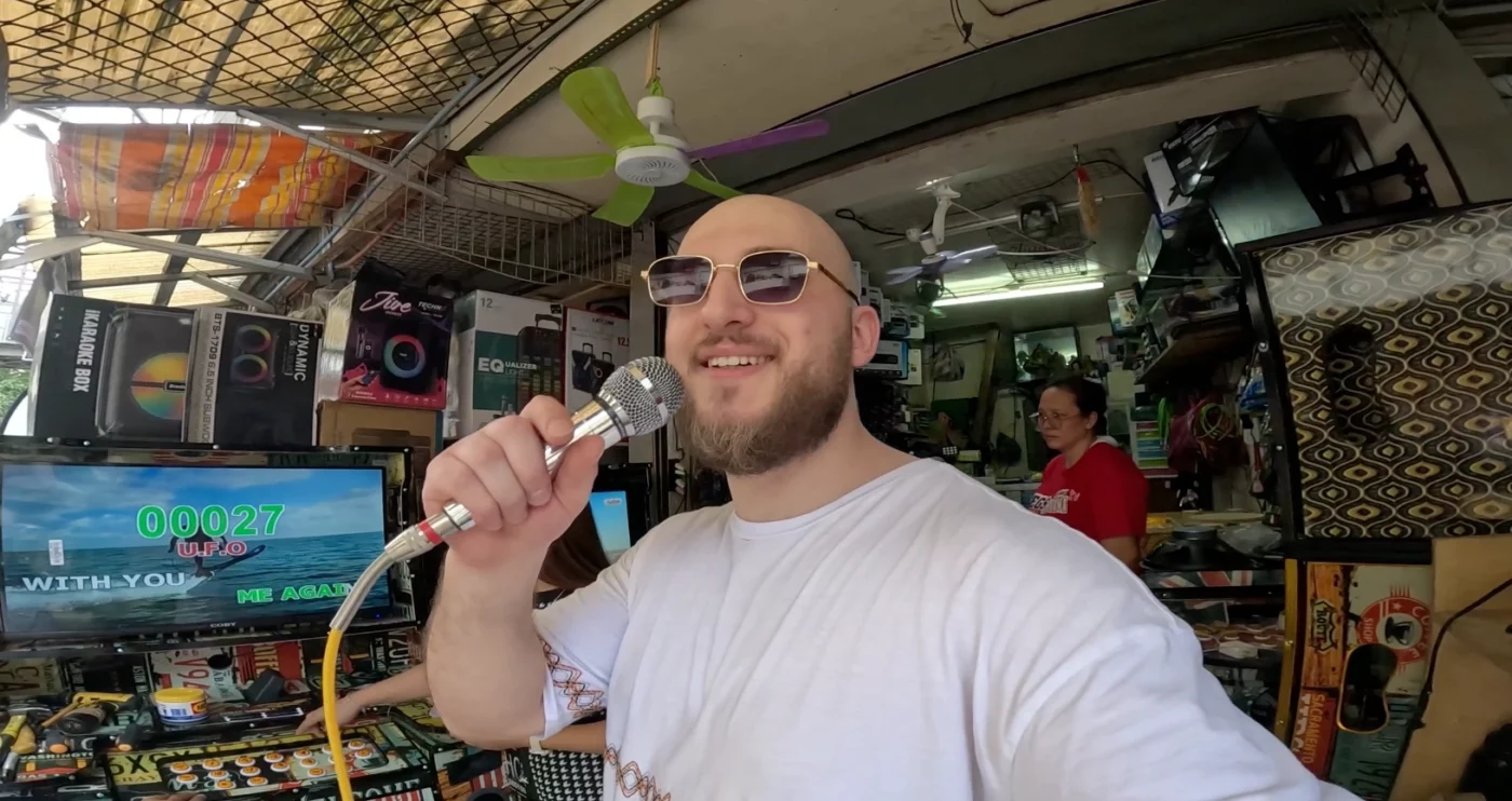 Beim Streifen durch Manilas Straßen betrat ich ein lokales Geschäft und fand eine lebhafte Karaoke-Bar. Karaoke ist ein großer Teil der philippinischen Kultur, und ich konnte nicht widerstehen, ein beliebtes philippinisches Lied, Pagsubok, zu singen. Diese Erfahrung ließ mich die philippinische Musik und die herzliche Gastfreundschaft der philippinischen Bevölkerung noch mehr schätzen. Ich liebe die Philippinen wirklich und fühle mich hier sehr willkommen.
